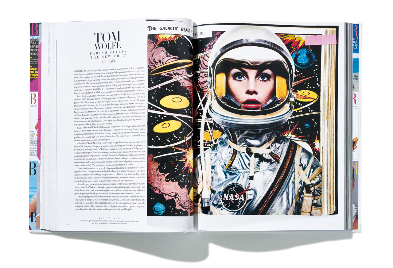 “1959년 4월, 나사(NASA)는 사상 최초로 우주비행사를 궤도로 올려 보내는 목적을 지닌 ‘프로젝트 머큐리’의 출범을 발표했다. 이는 미국과 소련이 대기권 밖 공간 정복에 몰두하던 냉전 시절, 우주 개발 경쟁의 최신 화두였다. <하퍼스 바자> 역시 곧바로 그 움직임에 함께했다. 시작은 리처드 애버던이 촬영한 1960년 2월호 패션 기사. 그는 플로리다 주 케이프 커내버럴에 위치한 나사 스페이스 센터에서 모델 도비마(Dovima)와 함께 당시 유행이던 기하학적인 형태의 룩으로 시선을 사로잡는 시리즈를 촬영했다.” 지난달, <바자>에 실린 1960년대 패션에 대한 기사 중 일부이다. 뿐만 아니라 1964년 진 슈림턴이 우주인의 헬멧과도 같은 핑크색 프레임을 둘러 쓴 채 촬영한 리처드 애버던의 사진은 여전히 <바자>의 전설적인 커버로 남아 있다. 이때 진 슈림턴은 우주를 주제로 한 이 화보에서 실제 나사의 우주복을 직접 입고 카메라 앞에 서기도 했다. 또한 이 우주 특집호(?)에서는 폴 매카트니 역시 우주복을 입고 저 먼 세상을 바라보는 듯한 표정의 사진을 남겼으며, 앙드레 쿠레주의 화이트 화보는 마치 우주정거장의 승무원과도 같은 미래적인 룩을 제안했다.