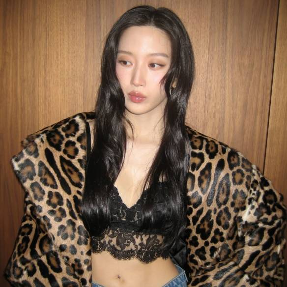 탱크톱과 속이 비치는 시스루 톱을 겹쳐 입고 샤넬의 서스펜더로 포인트를 준 제니의 무대 의상.
