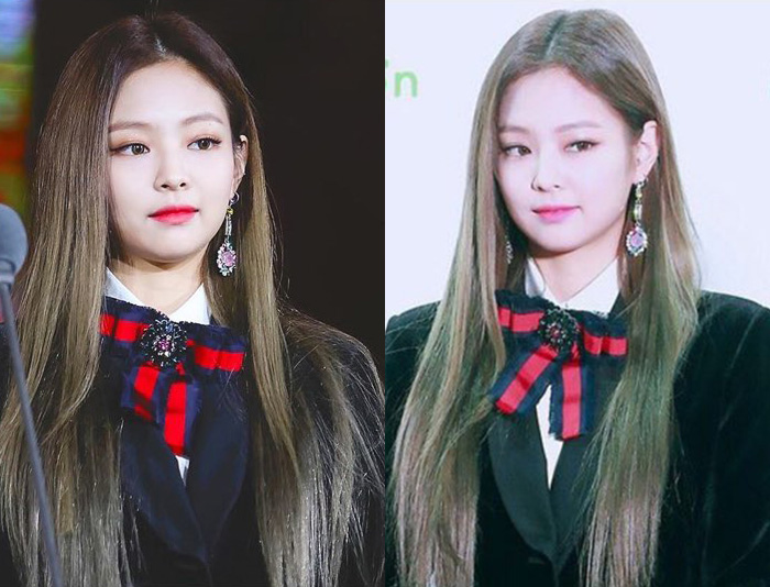구찌의 장식적인 보타이가 ‘찰떡같이’ 잘 어울리는 제니. 멜론 뮤직 어워드에서 화려한 스쿨 걸로 변신했다.