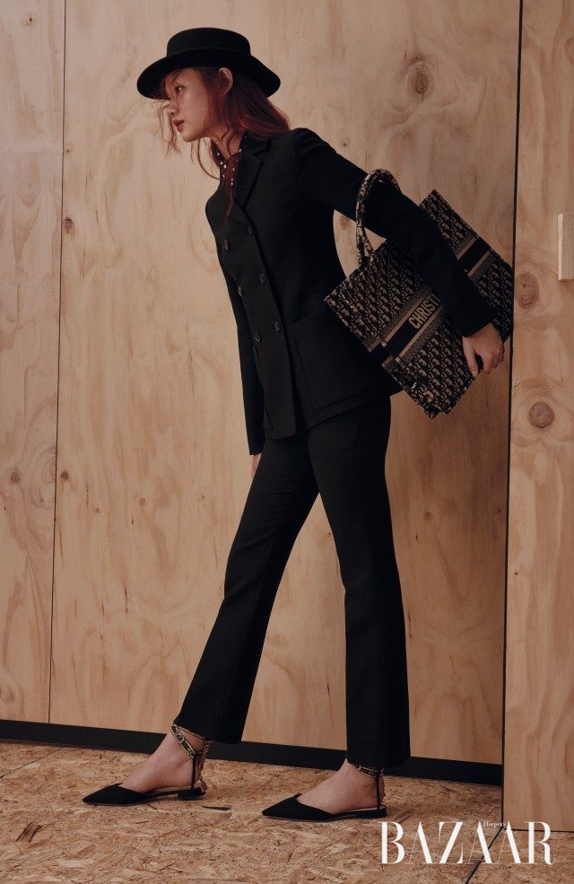 ‘디올스킨 포에버 언더커버 플루이드’ 파운데이션으로 결점 없는 피부를 연출하고 ‘루즈 디올’ 999 매트로 트루 레드 컬러로 매트한 립을 완성했다. 모두 Dior 제품.
