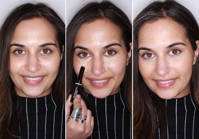 How to 본인의 피부톤과 가장 비슷한 컬러의 제품을 양쪽 눈 아래에 뒤집어진 삼각형 모양을 그리고 코 주변에도 칠해보도록 하라. 그런 후 메이크업 브러시로 잘 펴준다. 간단하고 빠르게 얼굴에 변화를 줄 수 있다.