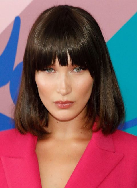 트렌드세터, 벨라 하디드가 선택한 단발은? 무거운 앞머리와 중단발의 컬래버레이션. 벨라 하디드의 긴 얼굴형이 짧아 보이는 순간이다.