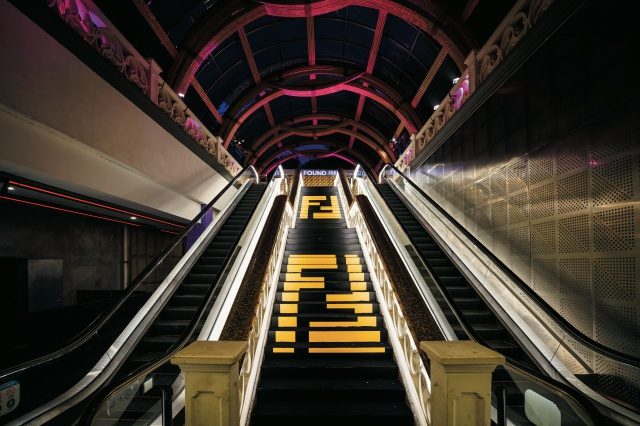 한편 지난 5월 25일 상하이에서 FF 리로디드 캡슐 컬렉션 출시를 기념하는 FF 리로디드 익스피리언스 행사가 열렸다. 디지털 플랫폼 ‘F is For’에서도 예측할 수 있듯 밀레니얼 세대를 타깃으로 한 지속적인 행보를 보여주고 있는 펜디답게 행사는 클럽 아캄에서 진행되었다. 아캄은 프랑스 조계지 성큰 플라자(Sunken Plaza) 아래 위치한 아시아에서 손꼽히는 언더그라운드 클럽. 게스트들을 처음 반겨준 건 로마의 펜디 본사 팔라초 델라 치빌타 이탈리아나의 아치를 꼭 닮은 흰색 네온 구조물과 대형 FF 로고로 꾸며진 계단, 이곳을 지나자 FF 로고의 과거와 현재, 미래를 보여주는 지하 공간이 모습을 드러냈다. 수많은 이들로 발 디딜 틈 없었던 행사장의 벽에는 FF 로고 네온 설치물과 세계 각지에서 온 거리 미술가 여섯 명이 ‘F is For’ 프로젝트를 위해 로마 본사 옥상에 그렸던 캘리그래피티 ‘미래의 고리(The Ring of the Future)’가 재현되어 눈길을 끌었다. 댄스 매트에 올라가 퓨처맨 게임을 즐기거나 셀피 타임을 가질 수 있었던 F-플레이 룸 역시 게스트들의 큰 호응을 얻었다.