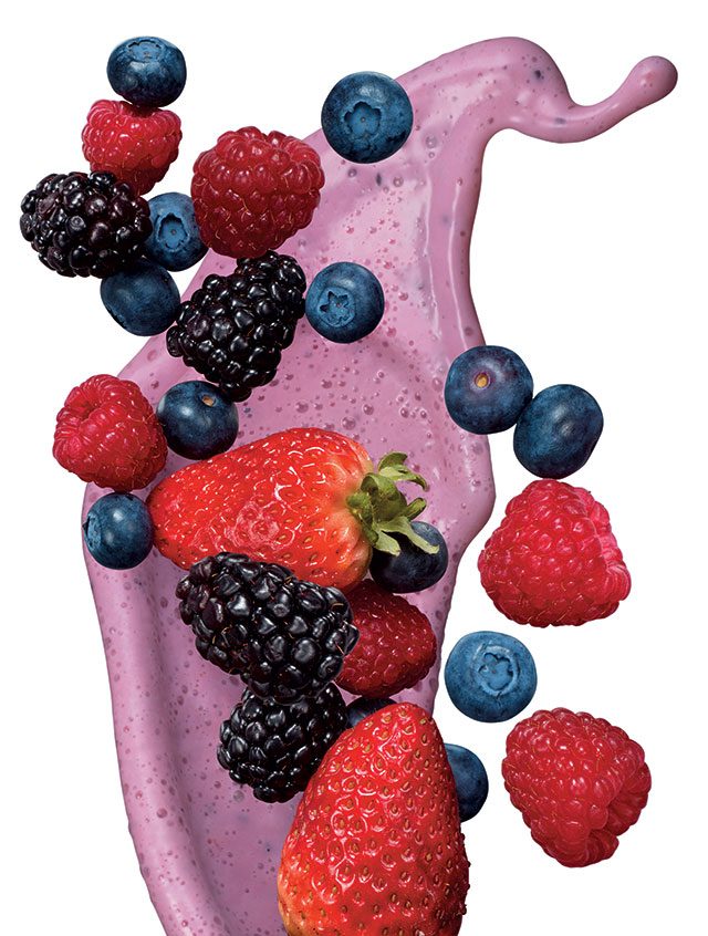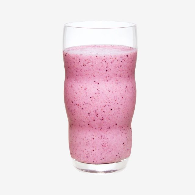 한혜진표 뷰티 주스. 아침에 이 주스를 마시고 운동을 하면, 근육 손실을 줄이고, 지방을 효과적으로 연소할 수 있단다. 세 가지 중에 가장 달고 맛있다. 재료는 딸기 7알, 저지방 플레인 요구르트, 블루베리 10알, 바나나 반 개, 물 약간.