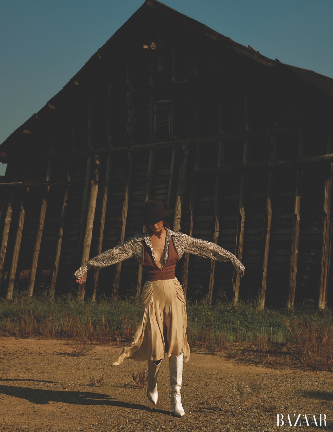 드넓은 하늘과 들판, 스산한 가을바람. 그 사이에서 마주한 웨스턴 룩의 모던한 재해석.