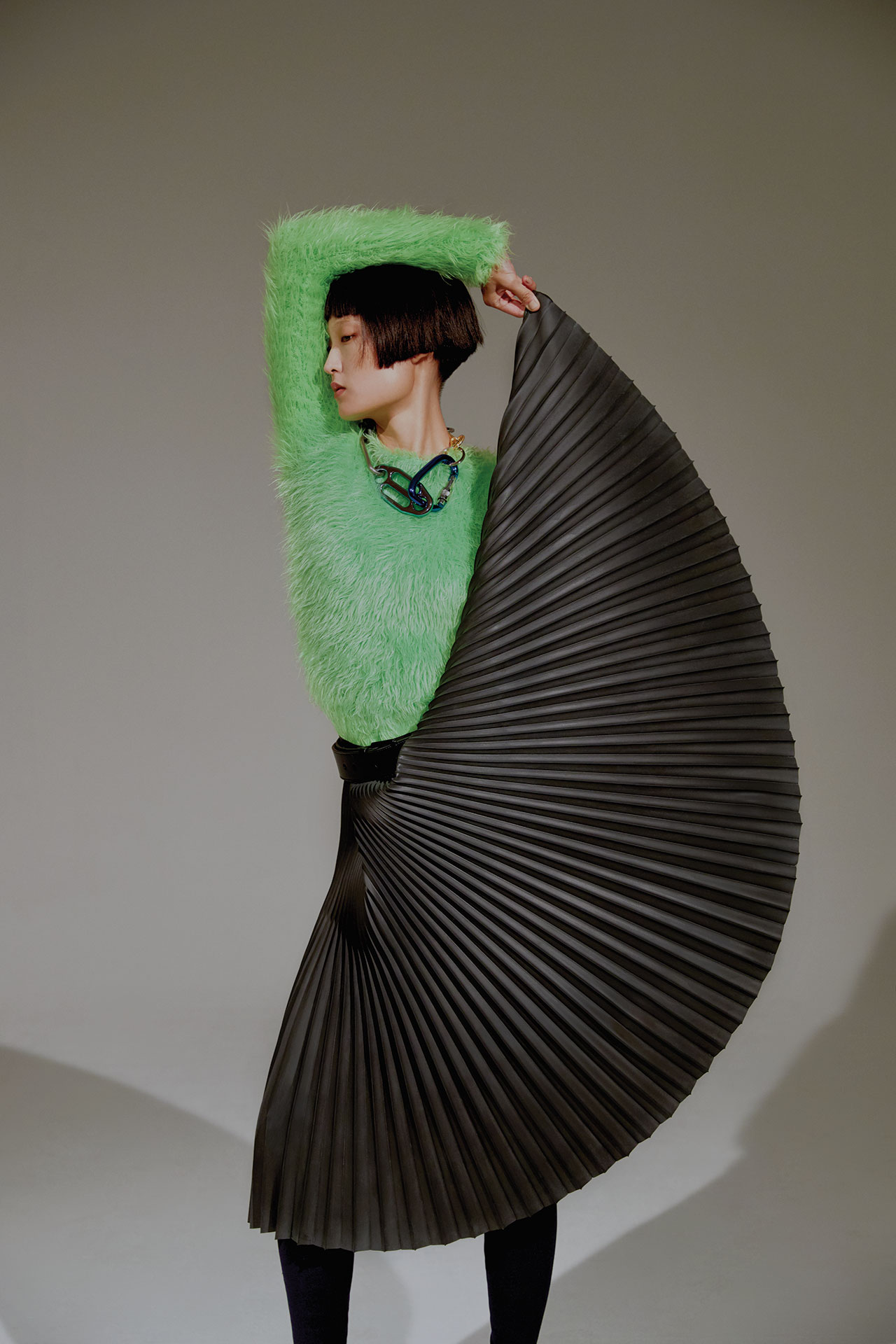 대담하고 역동적으로! 유려하게 흐르는 플리츠 스커트의 다이내믹한 변신.