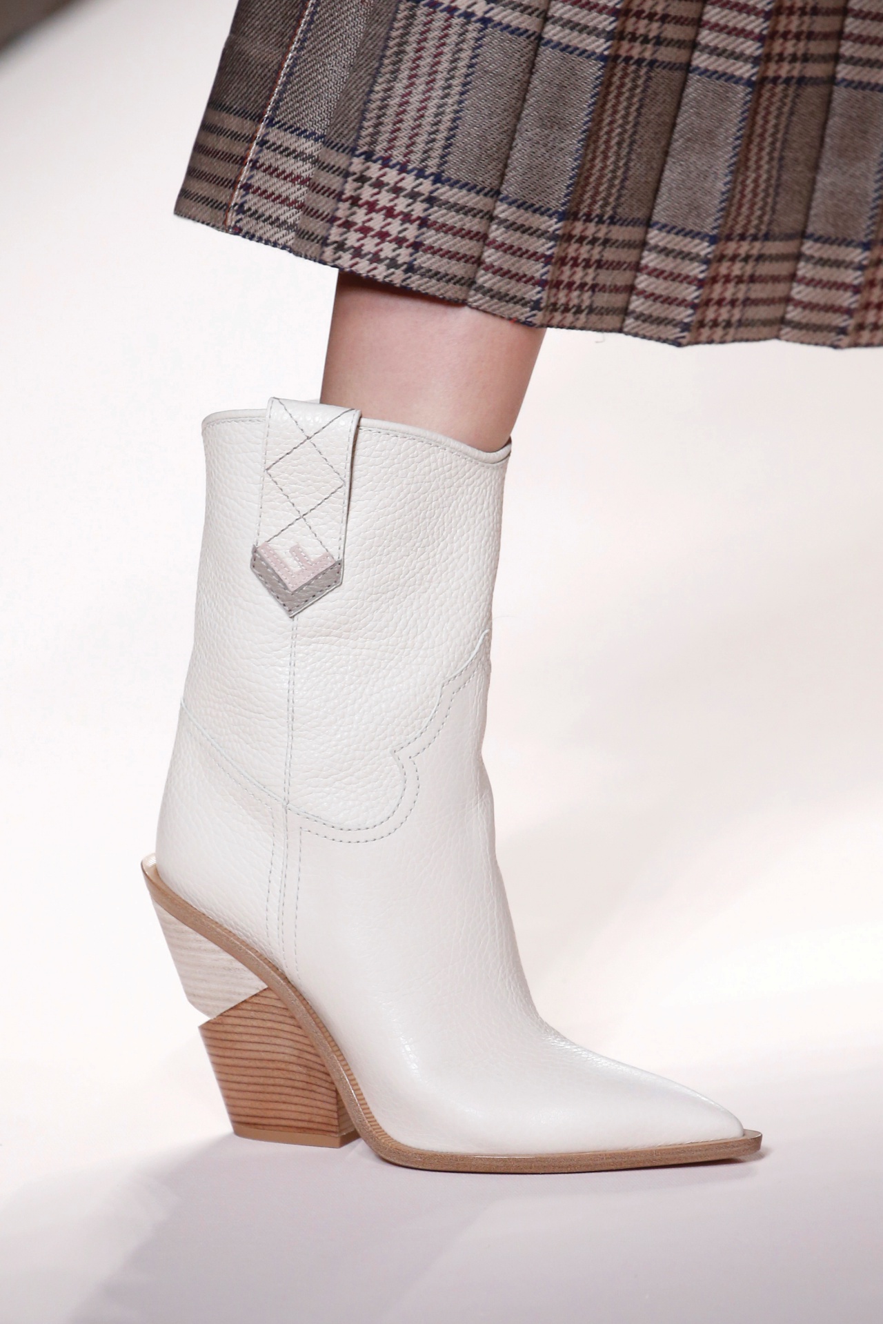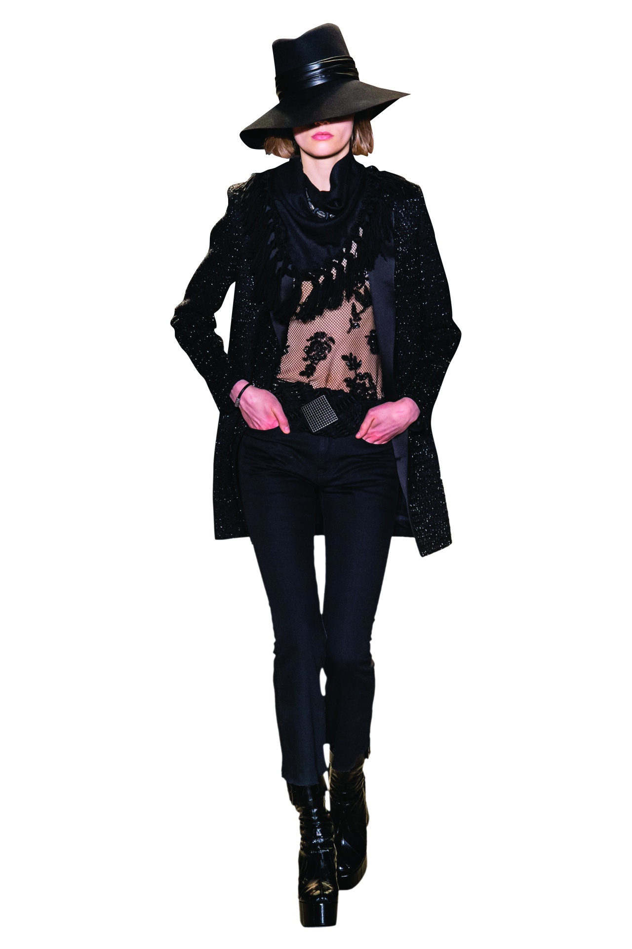 생 로랑도 아웃 포켓의 웨스턴 셔츠와 챙이 넓은 모자를 쓴 카우걸들을 무대 위에 올렸다. 클로에의 나타샤 램지 레비는 1970년대 빈티지 영화의 주인공이었던 앤젤리카 휴스턴, 이자벨 위페르 등을 떠올렸다고 밝혔다. “너무 강해서 차마 닿을 수 없는 존재로 묘사했어요.” 유연한 화이트 실크, 레이스 오간자 블라우스에 서부 개척자들이 입었을 법한 승마 팬츠를 매치하고 프린지가 휘날리는 코트에 레이스업 부츠를 신은 모델들. 그들의 워킹은 왠지 더 당당하고 힘차게 느껴졌다.