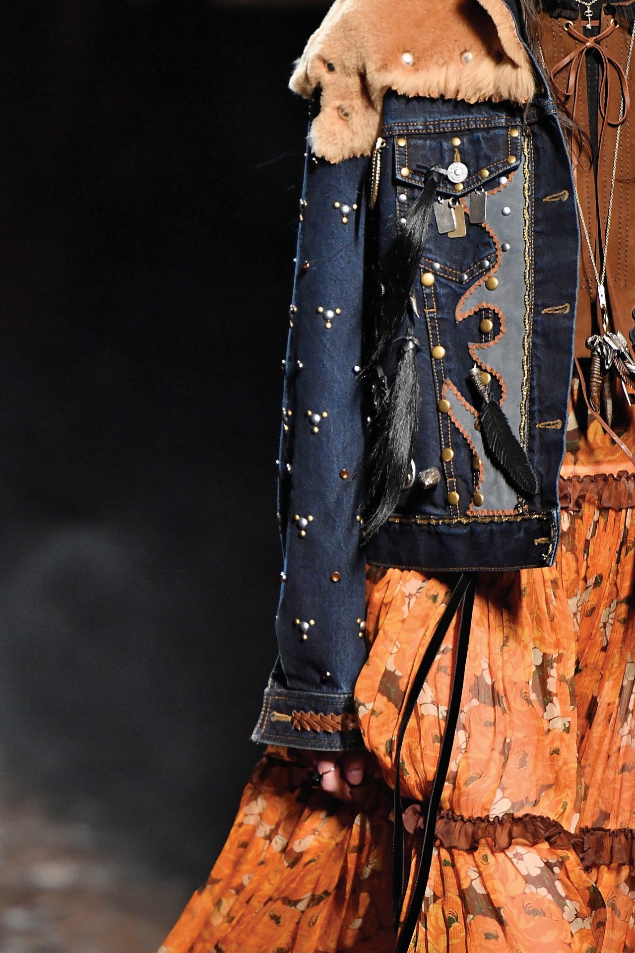 한편 서부개척시대의 중요한 여성 의복이었던 보헤미안풍 프레리 드레스도 대거 눈에 띄었다. 코치에서는 러플과 프린트를 더해 여성성을 더욱 부각시켰고 웨스턴 아우터를 매치해 쿨하게 스타일링했다. 황혼이라는 테마로 컬렉션을 완성한 에르메스는 마치 한 편의 서부영화를 보는 듯한 장관을 연출했는데, 부드러운 양가죽 팬츠와 애비에이터 재킷으로 웨스턴 파이어니어 룩을 연상케 했다. “미국 서부에 관하여 생각했습니다. 고전에 대한 현대적인 접근 방식은 웨스턴 장르의 전형성을 탈피한 짐 자무시의 영화 <데드 맨>에 가까웠죠.”라고 언급한 이자벨 마랑도 빼놓을 수 없다. 아메리칸 인디언 패턴이 장식된 청키한 니트 톱에 카우보이 부츠와 프린지 장식 액세서리를 매치한 룩은 지극히 일상적이면서도 아름다웠다.