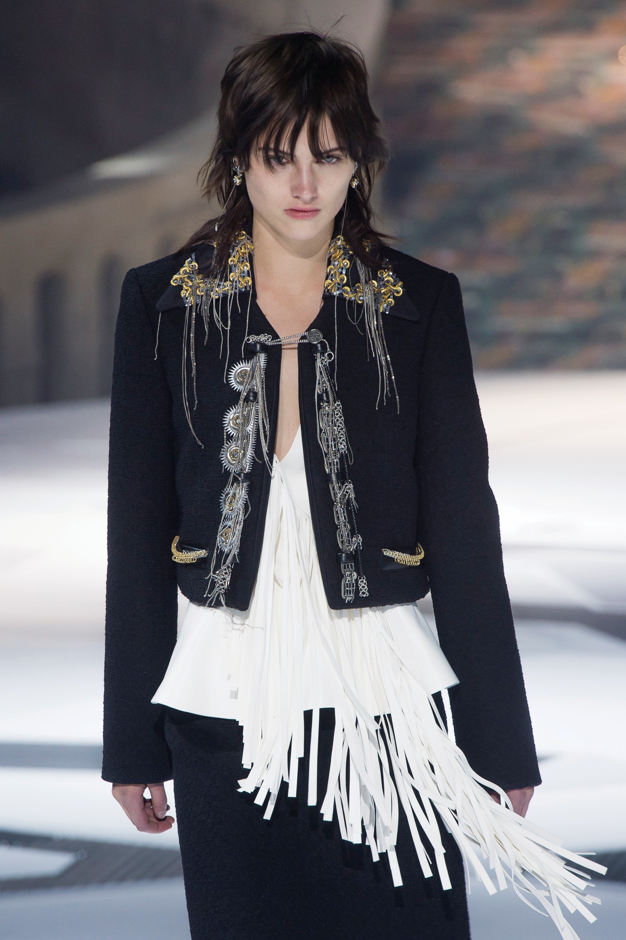 이번 시즌 디자이너들은 웨스턴 룩의 근원을 재조명해 동시대적으로 업그레이드했다. “여성이 강해 보이려고 남성적인 옷을 입는 방법은 진부해요. 세상을 바꾼, 정말 강한 여성은 아주 여성스러운 옷을 선택하죠.” 니콜라 제스키에르는 루이 비통의 오프닝 룩으로 웨스턴 무드의 짧은 재킷에 긴 프린지가 달린 블라우스를 매치했다. 여성의 권리에 대해 고민했다는 그의 말처럼 이번 시즌의 웨스턴 룩은 마치 여성 운동에 나선 듯 보인다.