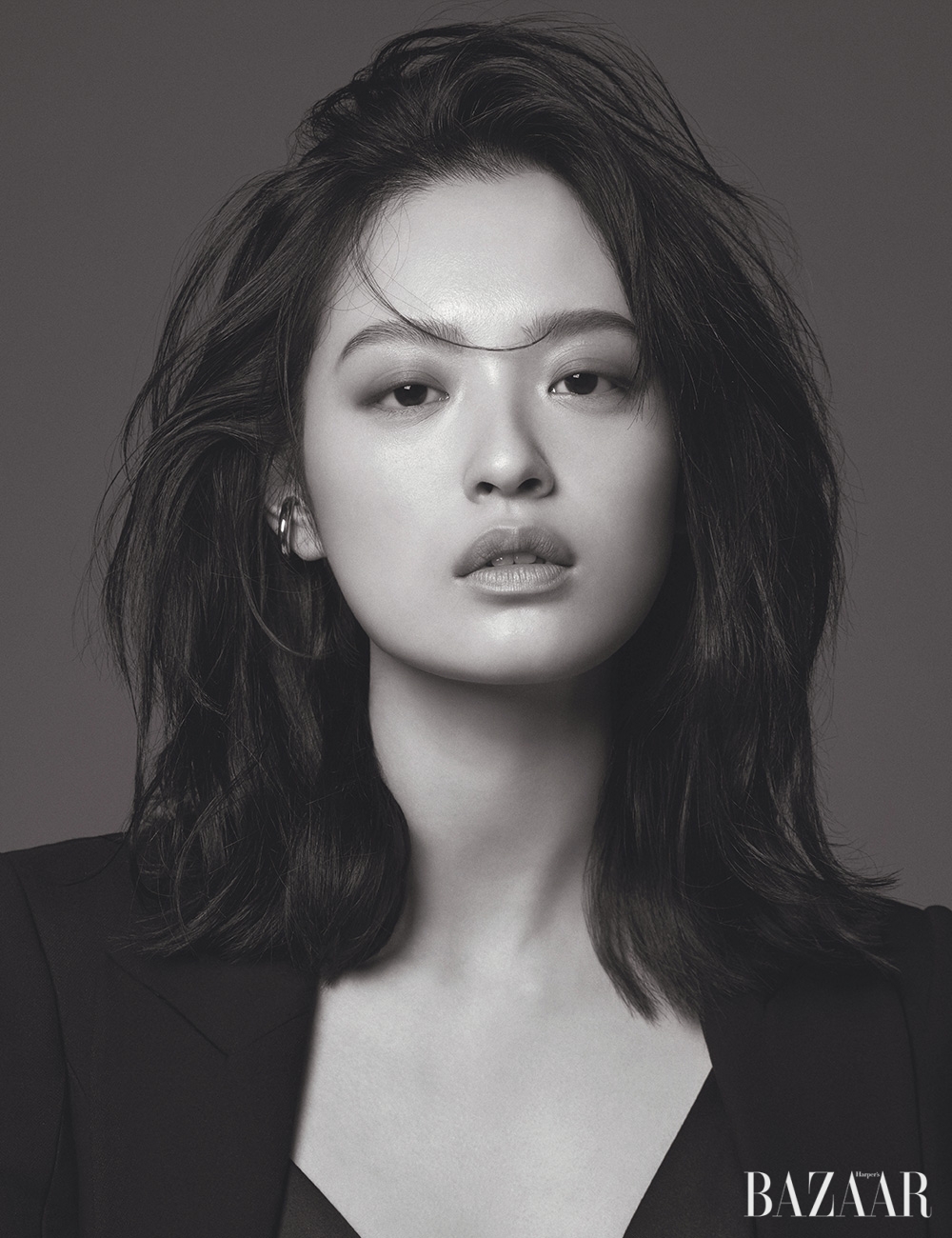 애매한 기장 때문에 번 헤어가 쉽지 않다? “헤어 라인과 머리 끝에 웨이브를 살짝 넣어주세요. 모발끼리 잘 뭉쳐 머리카락이 빠지지 않고 번 모양도 예쁘게 잡을 수 있어요.” 헤어 아티스트 이일중의 설명. 얼굴이 길다면 번의 높이를 정중앙에, 짧다면 귀보다 높거나 낮은 위치에 둘 것. 목 라인을 따라 삐져나온 잔머리는 모발이 아닌 손에 스프레이를 뿌린 후 만져 뻗친 듯이 자연스럽게 연출한다.
