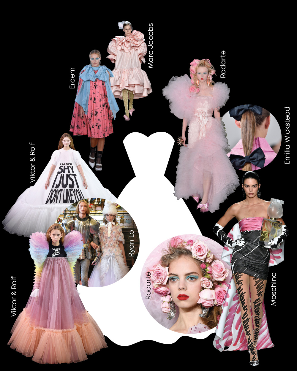 드레스는 물론이거니와 머리를 장식한 장미, 튤 장식, 베일로 완벽하게 동화 같은 컬렉션을 선보인 로다테, 중세시대 갑옷을 입은 왕자님과 함께 피날레를 장식한 라이언 로, 거대한 러플과 리본, 코르사주 장식이 달린 대담한 실루엣의 피스로 또 한 번의 드라마틱한 컬렉션을 완성한 마크 제이콥스, 마지막으로 패션계의 대표적인 바비 마니아 제레미 스콧의 모스키노 쇼에는 마치 그가 스케치북에 그려왔던 바비 걸들이 3D로 환생한 듯한 룩들이 등장했다. 실용성을 강조하는 시대에 현실감이 떨어지는 트렌드는 자연스레 소외되기 마련. 분명 이런 옷이나 트렌드는 현명한 스타일링 팁이 되어주진 못할 것이다. 하지만 꼭 바비가 아니더라도 동화책 속, 디즈니 만화 속 공주들과 함께 자라왔다면 누구나 갖고 있을 드레스에 대한 로망, 혹은 열망을 충족시키는 데 이보다 좋은 매개체가 또 있을까? “저는 항상 저를 행복하게 하는 것들을 찾고 있어요. 이 일에서 내가 하는 모든 것들은 그 기쁨을 전달하려고 노력하는 겁니다. 패션은 항상 재미있어야 하니까요.” 바비 마니아이자 패션 행복 전도사인 제레미 스콧의 말이다. 꼭 입을 수 없다 해도 괜찮다. ‘보는’ 즐거움을 느끼는 것도 패션을 통해 체감할 수 있는 판타지 중 하나일 테니.