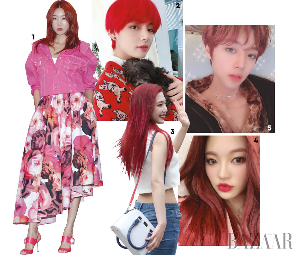 한혜진과 스완 외에도 ITZY 유나, BTS 뷔, 레드벨벳 조이, 워너원 박지훈 등 최근 레드 컬러로 변신한 스타들이 여럿 있다. 누군가는 쨍한 형광톤으로, 또 다른 누군가는 브라운에 가까운 레드로 머리카락을 물들였다. “얼마 전까지만 해도 매트한 애시 컬러가 대유행이었죠. 이제는 그 컬러에 질린 것 같아요.” 로레알 프로페셔널 파리 교육부 지효진의 말. 미쟝센 BM팀의 이예원은 “통통 튀는 컬러를 찾다가 애시 컬러와 반대되는, 강렬하고 화사한 느낌의 레드 컬러가 사람들의 눈에 띈 거죠. 게다가 레드 컬러는 애시 컬러처럼 탈색을 동반하지 않아도 되어서 도전하기 쉬워요. 피부를 화사하고 밝아 보이게 만들어주기도 하고요.”라고 덧붙인다. 사실 레드 헤어의 인기는 이번이 처음은 아니다. 10년 전, 한 드라마에서 재벌 그룹의 유일한 상속녀 역할을 맡게 된 윤은혜가 내세운 뷰티 포인트는 진한 스모키 메이크업과 와인빛이 감도는 헤어스타일이었다. 당시 그녀가 사용했다는 염모제가 알려지면서 해당 제품이 품절돼 윤은혜는 한동안 염색을 하지 못했다는 웃지 못할 해프닝도 있었다. 덕분에 그 해 여름은 다양한 톤의 레드 헤어 일색이었다. 그렇다면 10년이 지난 지금, 레드 헤어는 왜 다시 돌아온 걸까? 미쟝센의 이예원은 “팬톤에서 지정한 올해의 컬러가 영향을 준 것 같아요.”라며 레드 헤어 트렌드에 대해 설명한다. 스완의 헤어를 담당하고 있는 살롱하츠의 김도경은 유튜브를 하나의 이유로 들었다. 유튜브가 대중화되면서 많은 크리에이터들이 과감한 헤어 컬러에 도전하고 있으며 일반인들도 개성 있는 스타일에 더욱 익숙해졌다고 말이다. 실제로 헤어 컬러만으로 무지개를 만들 수 있을 만큼 과감한 헤어 스타일을 주변에서 쉽게 찾을 수 있을 정도다.