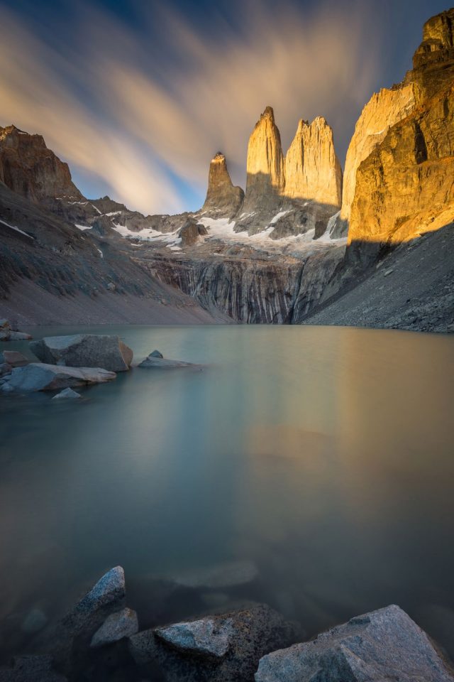 ‘죽기 전에 꼭 봐야 할 절경’에 꼽힌 칠레의 토레스 델 파이네 국립공원. 웅장한 경치와 풍부한 야생생물, 공원의 분위기를 압도하며 우뚝 솟은 파이네 산괴는 1,200만 년 전에 화강암으로 형성된 산맥이다. 숨 막히도록 아름다운 산과 호수, 거대한 빙하까지 둘러보는 일주 코스가 기본적인데 이 코스를 완주하려면 8~10일 정도의 시간이 필요하다.