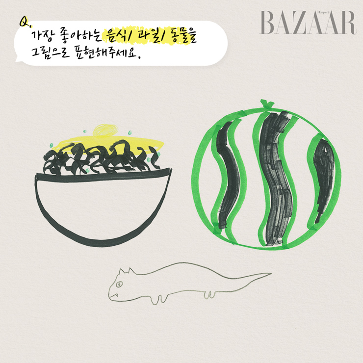 가장 좋아하는 음식/ 과일/ 동물을 그림으로 표현해주세요.