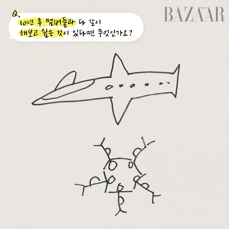 10년 후 멤버들과 다 같이 해보고 싶은 것이 있다면 무엇인가요?