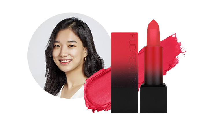 평소 매트 립을 선호한다. 그중에서도 후다 뷰티 파워 불렛 매트 립스틱은 매트하지만, 입술이 건조하거나 당김이 없는 편이라 가장 좋아하는 립스틱. 한 번의 터치만으로도 선명하게 발색되어, 바쁜 출근길에 빠르고 쉽게 포인트 메이크업하기 좋다. 립 하나만으로도 얼굴이 환해져 봄맞이 립 제품을 고민하는 분들에게 강추!