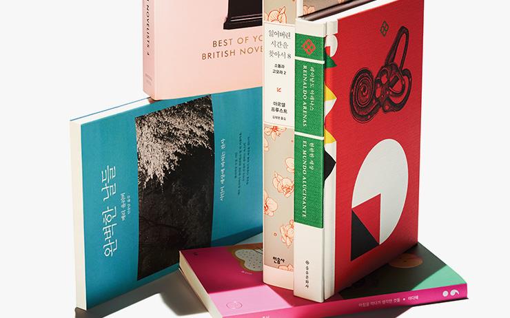 을유세계문학전집 리커버 에디션. (왼쪽 위부터 시계 방향으로) 오에 겐자부로 <개인적인 체험>, 안톤 체호프 <체호프 희곡선>, D. H. 로런스 <사랑에 빠진 여인들>, 레이날도 아레나스 <현란한 세상>, 헤르만 헤세의 <데미안>.