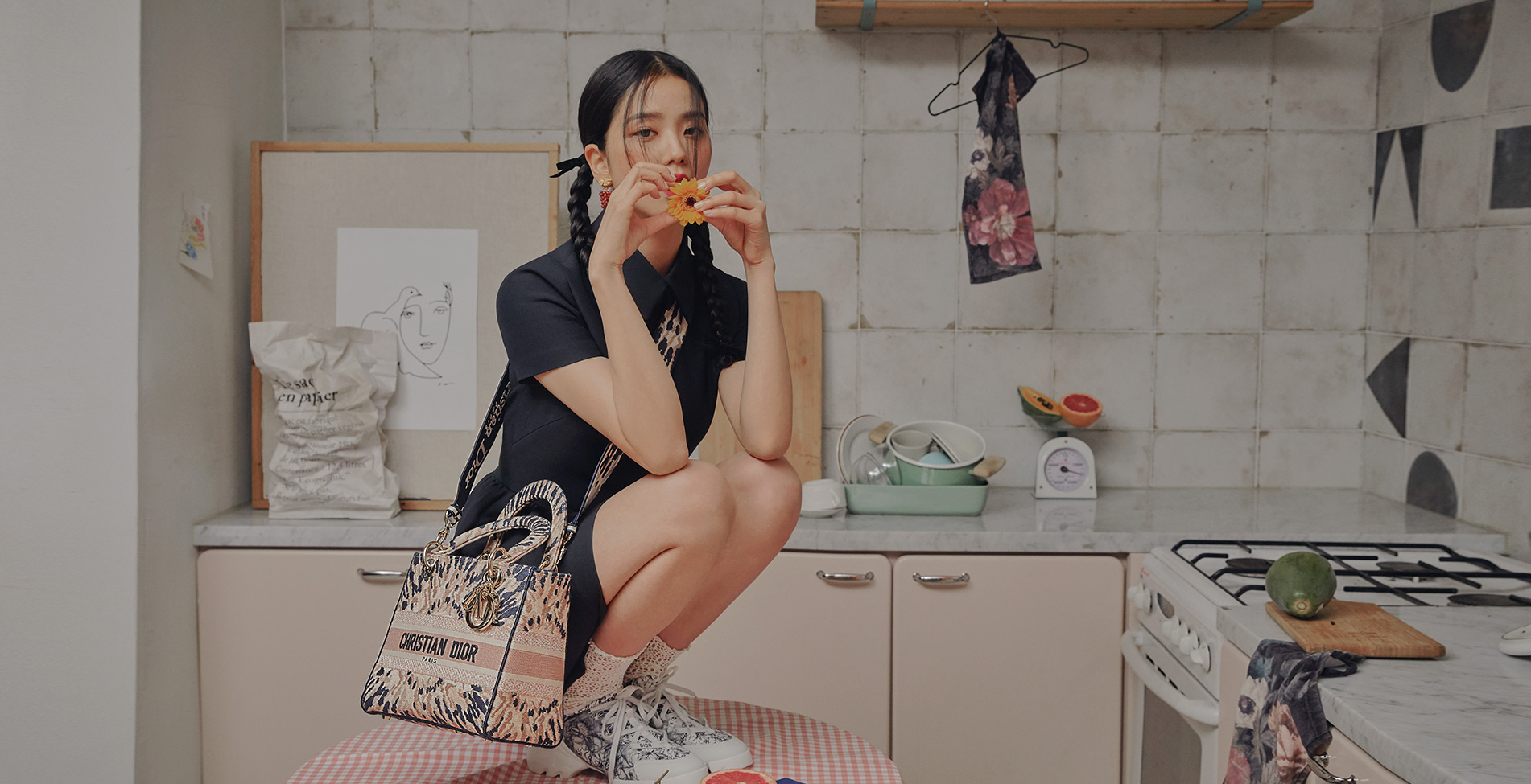 재킷, 팬츠, 목걸이, 반지, 스니커즈, 미디엄 사이즈의 ‘레이디 디올(Lady Dior)’ 백은 모두 Dior.