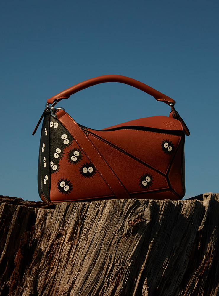 'LOEWE X My Neighbor Totoro 캡슐 컬렉션'에는 토토로와 그의 친구들이 핸드 프린트 되어있는 레더 자켓, 티셔츠, 스웨트 셔츠 등의 의상과 로에베만의 정교한 마르케트리(Marquetry: 상감세공) 기법으로 캐릭터 이미지를 세공한 가죽 가방, 가죽 액세서리 제품들이 준비되어 있다. 로에베의 아이코닉 백인 퍼즐백과 벌룬백, 해먹백에도 토토로가 프린트 되어 더욱 특별해졌다는 사실!