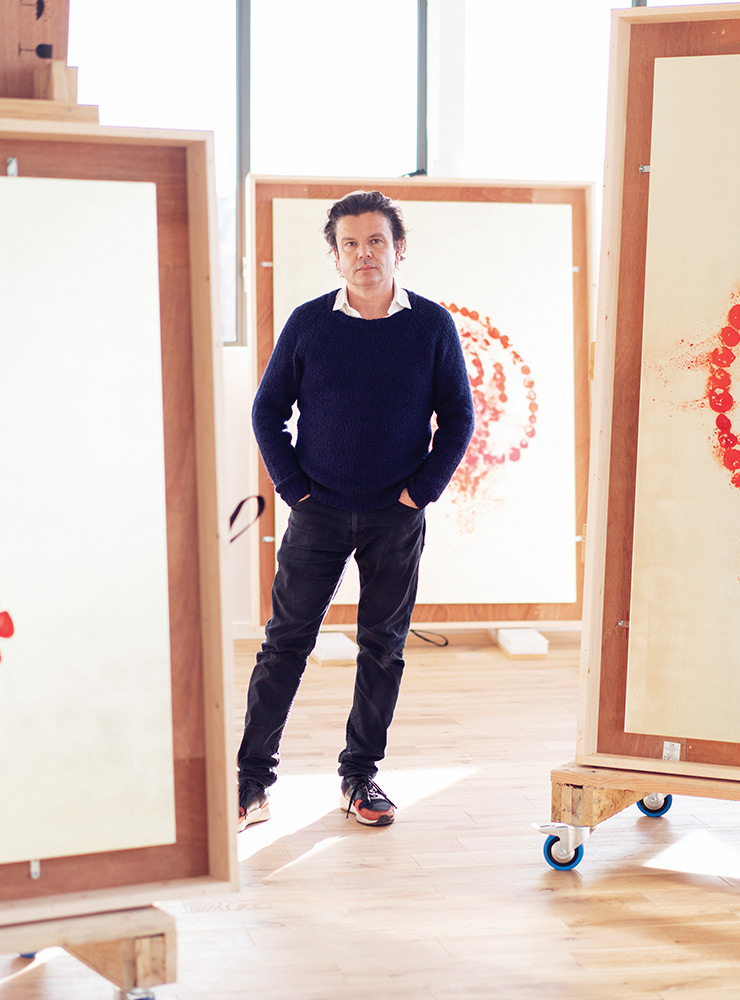 장-미셸 오토니엘(Jean-Michel Othoniel)은 파리 외곽 몽트뢰유 일대가 내려다보이는 스튜디오의 맨 꼭대기 층에 주로 머문다. 고요히 스튜디오 전반을 한눈에 바라볼 수 있는 곳, 어떤 사건도 일어나지 않을 듯 고즈넉한 동네에 역동적인 에너지를 불어넣는 예술가들의 존재 흔적까지 풍경으로 품은 공간이다. 유례없는 시대를 온 생으로 겪어내는 것이 남은 자들의 공통의 몫이 되었지만, 예술가들은 멈출 수 없다. 여기서 그는 장미(<La Rose du Louvre>)를 그리고 또 그렸다.