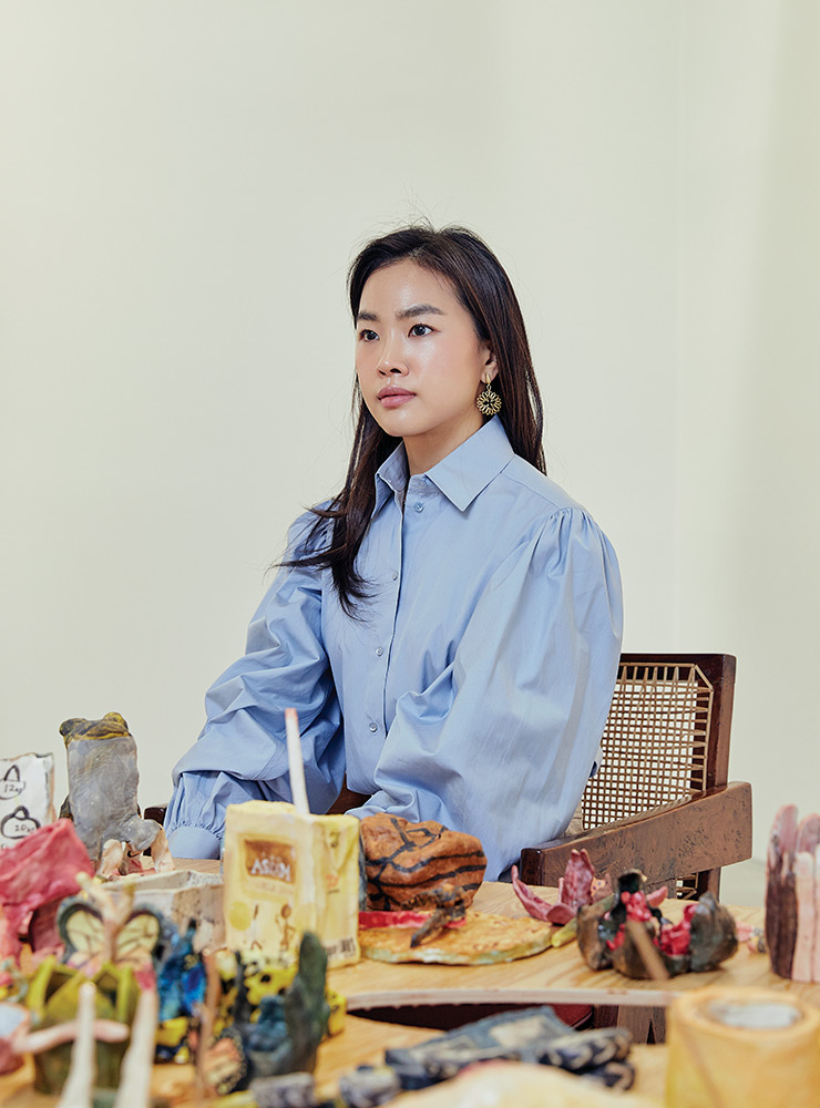 요구르트병이나 시계, 붓, 껌, 과자 부스러기 등 작업실에서 그대로 옮겨온 듯한 80여 점의 세라믹 조각을 보노라면 당신이 얼마나 이 작업을 즐겁게 하고 있는지 알 것도 같다.