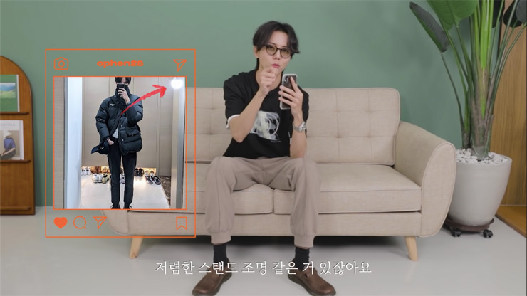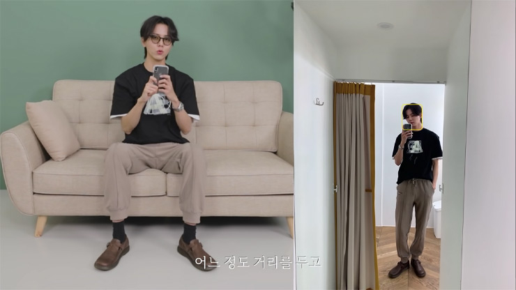혼자 있어도 인생샷은 남기고 싶어! 모델 주우재에게 거울 셀카 찍는 방법을 배워보자. 먼저, 조명의 위치를 신경 쓴다. 주우재는 거울샷에서 가장 중요한 것은 조명이라고 말한다. 대부분 거울은 구석에 있고 역광을 받을 때가 많아 사진이 어둡게 나오기 때문이다. 외출 전 신발장 앞에서 OOTD를 즐겨 찍는다면, 저렴한 스탠드 조명을 거울 옆에 두고 사진을 찍어보자. 사진이 더욱 화사해 보인다. 다음은 얼굴이 화면 가득 들어오는 거울 셀카를 찍을 때 유용한 팁이다. 자신 있는 얼굴, 반대편 손에 스마트폰을 든다! 오른쪽 얼굴이 카메라를 조금 더 잘 받는다는 주우재는 주로 왼손에 스마트폰을 들고 사진을 찍는다고 한다. 전신 거울 셀카를 위한 팁도 있다.발끝을 카메라 앵글 끝에 맞추는 것이다. 여기서 포인트는 내 모습이 화면의 2/3 정도를 차지하도록 거울과 적정 거리를 유지하는 것이다.
