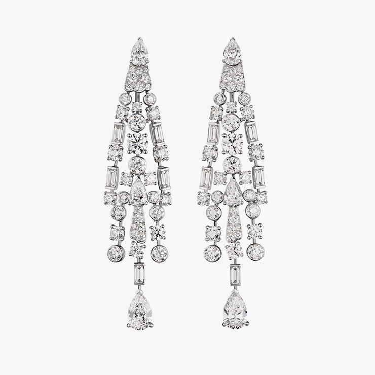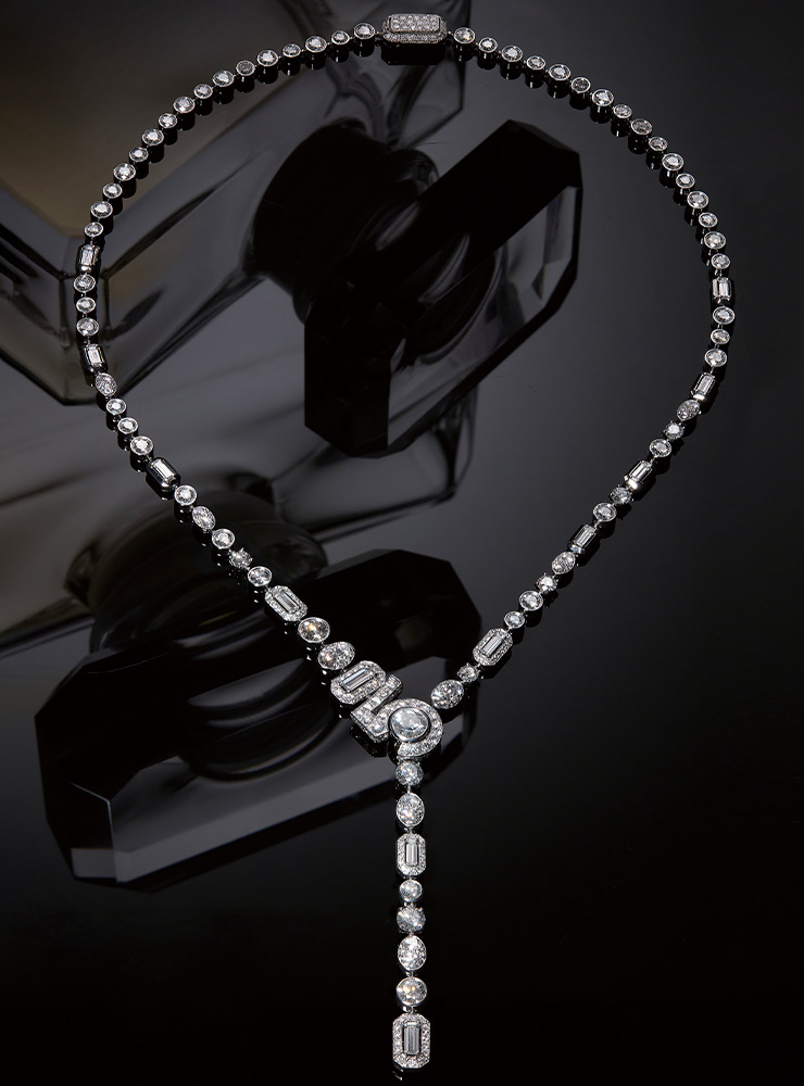 ‘N°5’가 온전히 새로움의 시작이 될 수 있었던 건 하나의 꽃에서 추출한 향이 아니라 80여 개의 성분을 마치 부케처럼 엮어서 만든 복합적인 면 때문이다. 가브리엘 샤넬의 바람대로 “마치 드레스처럼 손으로 만들어지는 구조적인 향수”는 신비로운 잔향을 남긴다. 이번 하이주얼리 컬렉션에서는 ‘N°5’의 잔향을 섬세한 시선으로 시각화했다. 피부 위에서 반짝이는 향의 모습은 방사형으로 퍼지는 다이아몬드 선으로 표현했다. 바로크적인 분위기가 섞인 영롱한 선들은 후각이 아닌 시각적 향이 되어 스타일의 잔향, 아니 잔상을 남긴다.
