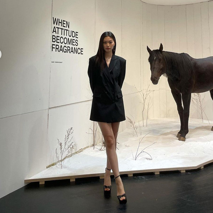 긴 생머리가 청순한 분위기만 연출할 거라는 생각은 잘못된 편견! 위키미키 도연처럼 블랙 재킷에 드롭 이어링과 특히 긴 생머리를 늘어뜨린다면 시크한 느낌까지 자아낼 수 있다.