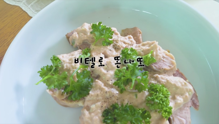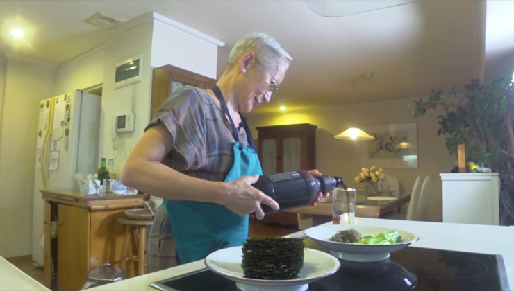 밀라논나는 먹는 것에 큰 에너지를 들이지 않는다고 말한다. 그래도 세 끼 중 점심을 가장 푸짐하게 먹는다고 하는데, 점심 식단의 포인트는 채소 위주의 구성에 단백질을 곁들이는 것이다. 영양소를 파괴하지 않기 위해 야채는 생으로 먹거나 조리를 간소화한다. 이날 점심의 메인 요리는 전날 먹고 남은 돼지고기 수육을 활용한 음식. 여기에 구운 호박과 가지, 직접 만든 피클을 곁들였다. 탄수화물을 줄이기 위해 밥은 두부로 대체하기도 한다.