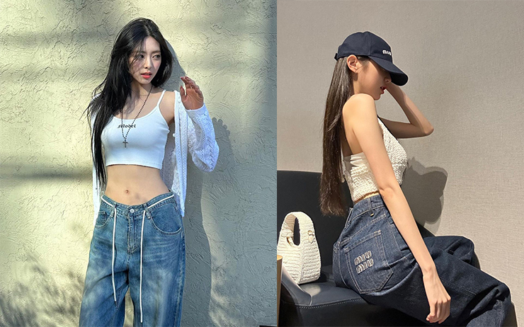 청바지에 흰 셔츠 한장으로 완벽한 아웃핏을 완성한 원영. 170cm의 큰 키에 베이비페이스, 대충 찍어도 화보가 되는 분위기에 군살 없는 허리로 화룡점정! 딱 붙는 크롭톱이 부담스럽다면 발랄한 데일리룩으로 손색없는 크롭트 블라우스를 시도해볼 것. 장원영