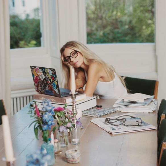 헤드스카프 디테일 코트, 슬리브리스 톱은 Balenciaga.