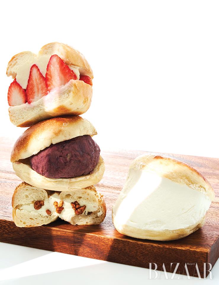 초코맛 크림치즈와 블루베리 크림치즈가 들어간 ‘반반 베이글’, 고르곤촐라 치즈와 호두가 들어간 베이글 등 다양한 종류를 맛볼 수 있다. 가장 인기 있는 아이템은 단연 과일 샌드. 쫄깃한 빵 안에 딸기, 백앙금, 크림치즈, 견과류까지 알차게 들어 입안 가득 다채로운 맛을 즐길 수 있다.