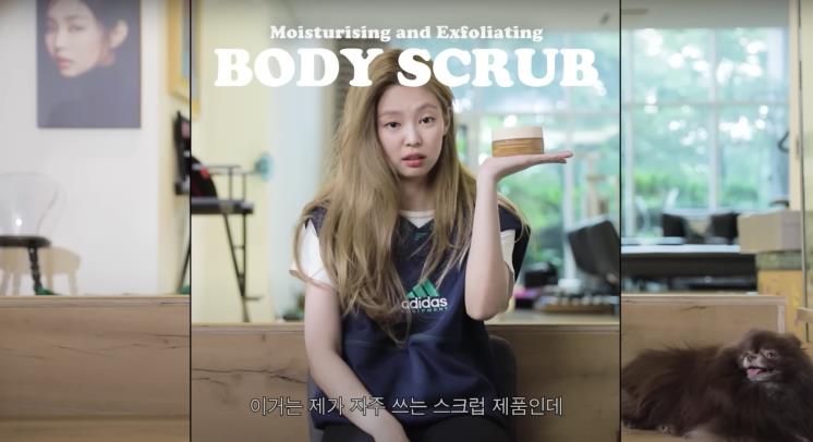 평소 반신욕과 보디 케어를 통해 스트레스를 해소하며 보디에 신경을 많이 쓰는 편이라는 그. 제니의 하얗고 부드러운 피붓결의 비결 아이템으로 밝힌 스크럽 제품이다. 오일 밤 제형으로 도포하는 순간 달콤한 꿀 향기가 나며 건조하고 예민한 피부 타입도 사용 가능하다.