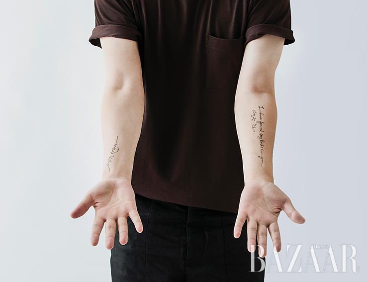 셔츠, 팬츠는 Lcbx. 이너 티셔츠는 Paul Harnden. 슈즈는 Marsell.