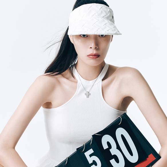 유튜버이자 사업가로 새로운 전성기를 맞고 있는 강민경은 편안한 핏의 필라 테니스웨어를 골랐다. 넉넉한 사이즈의 칼라스웨트 셔츠로 활동성을 잡고, 하의는 체커보드 패턴의 플레어 스커트로 힙 한 방울까지 놓치지 않았다. 강민경