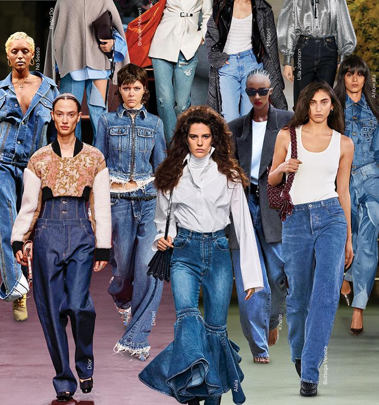 데님은 한정된 스타일에 그치지 않고 활용도가 핵심인 클래식한 옷장에서 지속적으로 존재감을 입증하고 있다. 2022년 F/W 시즌, 보테가 베네타의 크리에이티브 디렉터로 데뷔한 마티유 블라지는 데님에 포토리얼리즘(photorealism, 사물을 사진처럼 정확하고 상세하게 묘사하는 예술 기법) 효과를 내기 위해 스캐닝한 가죽을 적용했는데 그 결과 버터처럼 부드러운 보이프렌드 데님이 완성되었다. 또한 럭셔리 니트 업계의 1인자인 로로피아나는 일본 장인의 직기로 짠 부드러운 촉감의 웜 블루 컬러 트라우저를 선보이며 세계 최초의 캐시미어 소재 데님을 탄생시켰다. 시크하게 테일러링한 데님 트라우저는 펜디와 디올에서도 만나볼 수 있다. 특히 디올은 크리스찬 디올의 행운의 숫자를 상징하는 ‘데님 캡슐 디올 8(Dior 8)’을 소개해 눈길을 끌었다. 오늘날의 데님은 지속가능성을 추구하는 분위기로 가고 있다. 스텔라 매카트니나 매기 마릴린, 발렌시아가, 마더 등 점점 더 많은 디자이너들이 유기농 원단과 업사이클링 옵션을 이용하고 있으며, 제조 파트너들 역시 친환경적인 데님을 만들기 위해 염색과 워싱 공정에 큰 변화를 주었다.