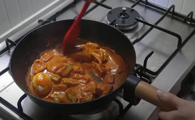 8. 야채가 숨이 죽으면 물을 붓고 불을 끈 뒤 잘 저어준다.