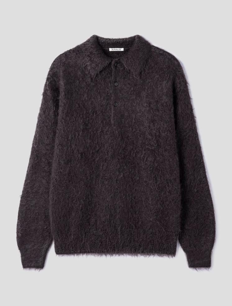 오라리의 시그너처 아이템이라 할 만큼 매년 다양한 컬러로 출시되는 모헤어 니트를 눈여겨보자. 헤어리한 소재감은 다른 특별한 디테일이 없더라도 룩에 포인트를 준다. 오버핏의 넉넉한 실루엣으로 셔츠와 함께 레이어드하면 댄디한 남친룩 코디 완성! 단독 착용만으로도 룩을 완성시켜줄 카라 디테일의 폴로 니트도 추천한다.