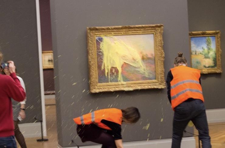 명화 테러가 잇따라 발생하고 있다. 예를 들어 독일 환경단체 라스트 제너레이션(Last Generation)은 클로드 모네 <건초더미>에 으깬 감자를 던졌다. 선구자로서 어떻게 생각하나?
