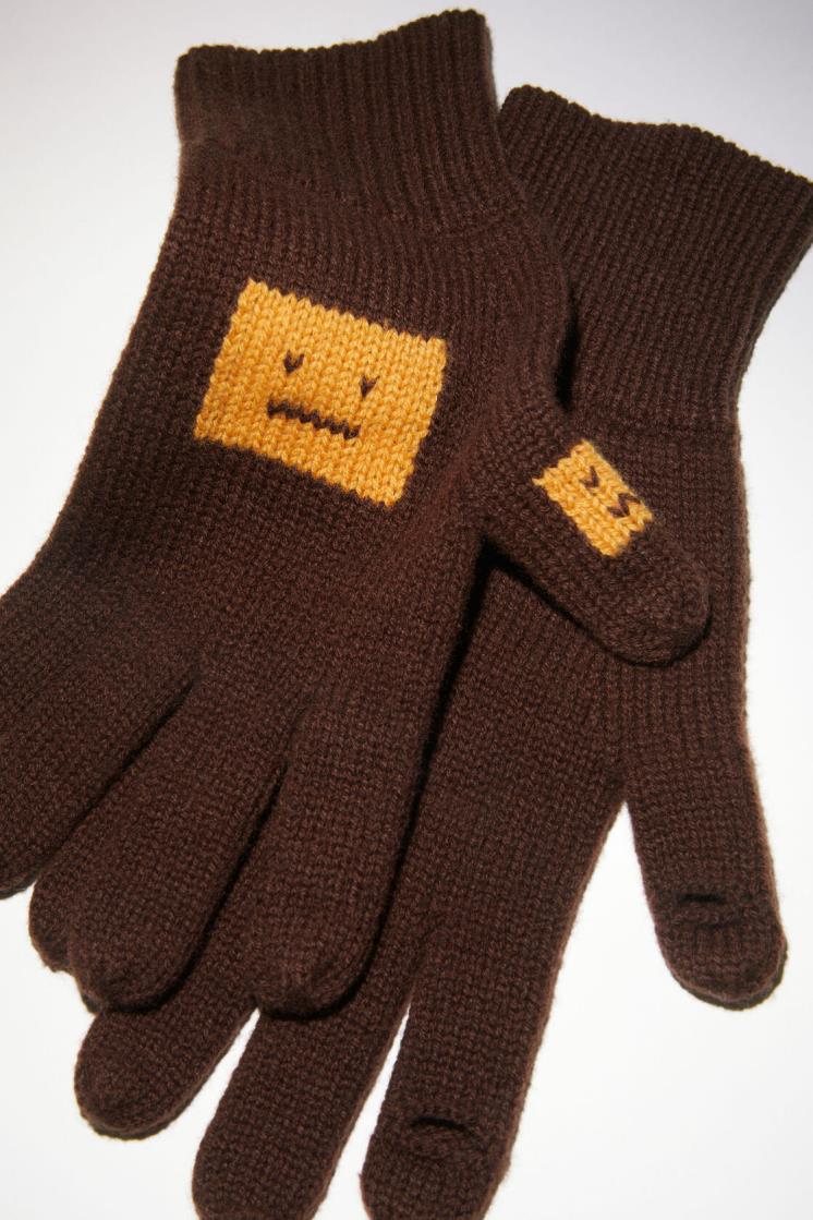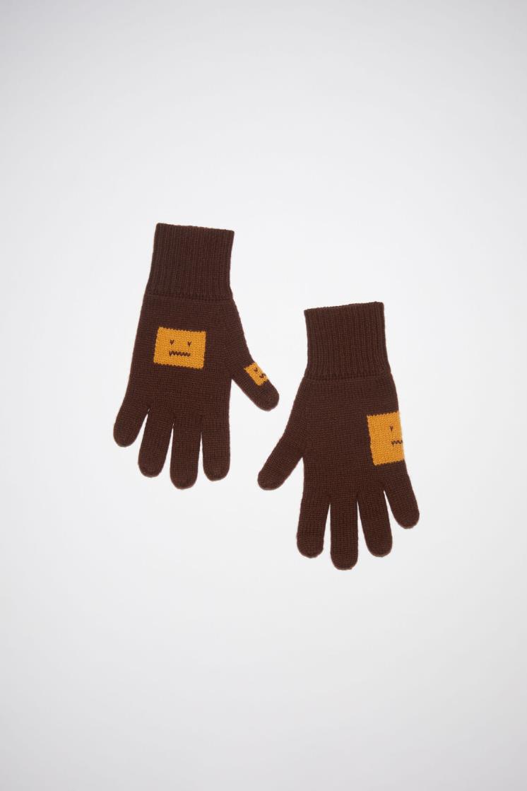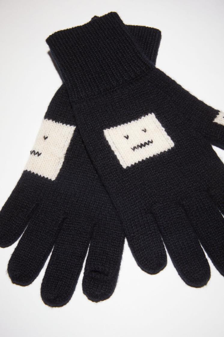 울 혼방 니트 소재로 제작된 아크네 스튜디오의 니트 장갑. 블랙, 오트밀 멜란지 컬러가 조화된 색상과 오렌지, 커피 브라운 컬러가 어우러진 두 가지 제품으로 만나볼 수 있다. 손등 부분과 손날 부분, 엄지손가락 부분에 표정을 형상화한 페이스 로고 디테일이 있어 재미를 더한다.