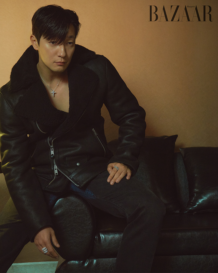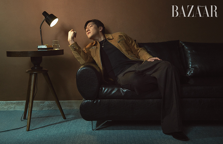 스웨이드 재킷은 Iro. 팬츠는 Ferragamo. 티셔츠, 로퍼는 스타일리스트 소장품.
