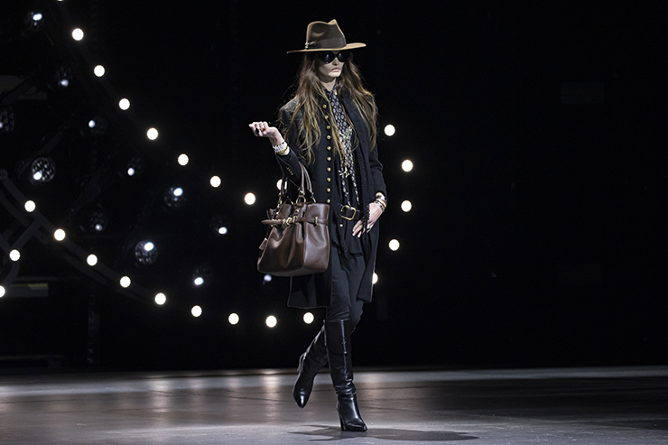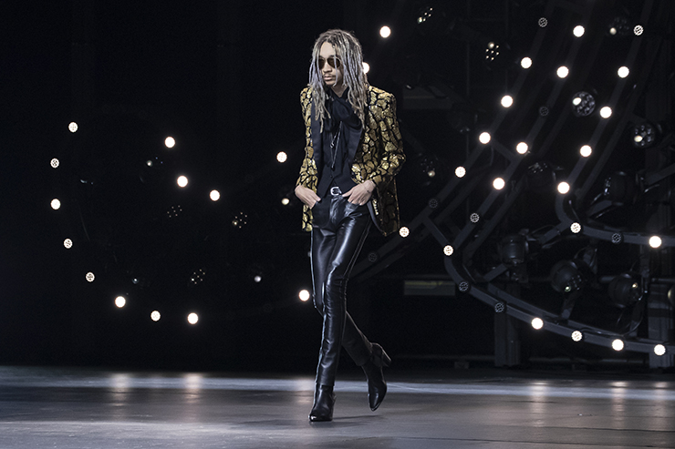 에디 슬리먼은 이번 컬렉션에 ‘Age of Indieness’라는 타이틀을 내걸었다. 이는 그가 Y2K 패션을 이을 트렌드로 지목된 인디 슬리즈 스타일(Indi Sleaze Style, 1980년대의 맥시멀리즘과 1990년대의 그런지 룩이 한데 뒤섞여 다소 꾀죄죄해 보이고 어딘지 혼란스러워 보이는 패션으로 2000년대 후반에 유행했다)을 컬렉션에 담았다는 얘기다. 당시 인디 슬리즈를 대표하는 패션 아이콘으로는 스카이 페레이라, 피트 도허티, 시에나 밀러, 케이트 모스, 알렉사 청이 있었다. 이를 대변하듯 2000년대 개러지 록 리바이벌 열풍과 전성기를 주도한 록 밴드, 화이트 스트라입스(The White Stripes)의 ‘Hello Operator’가 쇼의 사운드트랙으로 흘러나왔고, 런웨이 직후엔 이기 팝(Iggy Pop), 스트록스(The Strokes), 인터폴(Interpol) 그리고 DJ 더 킬스(The Kills)의 라이브 공연이 펼쳐졌다.
