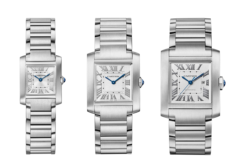 까르띠에 스테디셀러, 66년생 탱크 프랑세스 워치가 2023년, 더욱 모던하고 세련된 모습으로 선보인다. 사이즈는 총 3가지로 남성도 함께 사용할 수 있다. 쿼츠 무브먼트, 세련된 스틸 케이스와 브레이슬릿이 특징이다. 라지 사이즈에는 오토매틱 와인딩 메캐니컬 무브먼트 날짜창이 적용되어 있다.