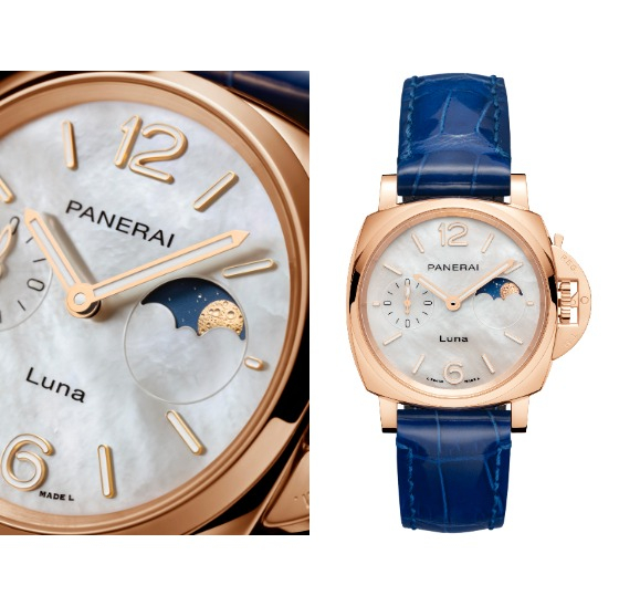 1876년, 이탈리아의 피렌체에서 시작한 파네라이는 한눈에 인지할 수 있는 강력한 디자인 코드가 특징이다. 파네라이의 CMO (마케팅 커뮤니케이션 총괄) 알레산드로 피카렐리에 따르면, '사각이나 직사각형 등을 전혀 고려하지 않는 까닭은 역사적인 의미가 있는 피스로부터 형태와 디자인 개발을 시작하기 때문이다. 그 후에 기능과 소재, 컬러를 개발한다. 그렇기에 유니크한 이탤리언 디자인의 시계가 탄생된다.'라고 디자인 철학을 밝히기도. 이번에 30대 여성에게 추천하는 파네라이의 루미노르 두에 루나 역시, 파네라이만의 감성을 담았다. 이는 브랜드 최초로 출시된 여성 컴플리케이션(문페이즈) 워치로 의상 스타일이나 무드에 따라 스트랩을 교체할 수 있어 늘 새로움을 준다. 다이얼의 골드 아라비아 숫자 및 아워 마커, 스몰 세컨즈, 문페이즈가 야광이라 밤에도 손쉽게 시간을 확인할 수 있는 장점이 있다.