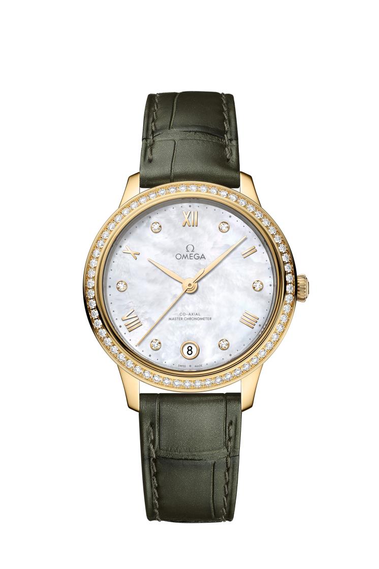 1994년부터 사랑받는 오메가 드 빌 프레스티지 컬렉션이 3세대 모델을 출시했다.18K 옐로우 골드, MOP다이얼, 그린 레더 스트랩이 특징인 오메가 드 빌 프레스티지는 기계식 무브먼트 워치다. 다이아몬드가 파베 세팅된 베젤과 화이트 자개 다이얼이 품격을 더하며, 특히 그린 레더 스트랩과 옐로우 골드의 조화가 세련되기 그지 없다. 디스플레이는 PVD 처리된 세드나™ 골드 컬러 핸즈, 교차 배열된 로마 숫자, 18캐럿 세드나™ 골드 홀더에 세팅된 다이아몬드 마커가 우아함을 극대화한다.