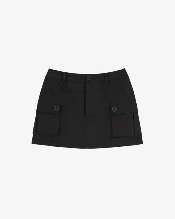 카리나가 입은 스커트는 포켓 디자인과 절개 디테일이 특징이다. 시크한 무드를 연출하고 싶다면 그처럼 올블랙 룩으로 입어볼 것. 여기저기 잘 어울려 캐주얼하게 입기도 좋다.