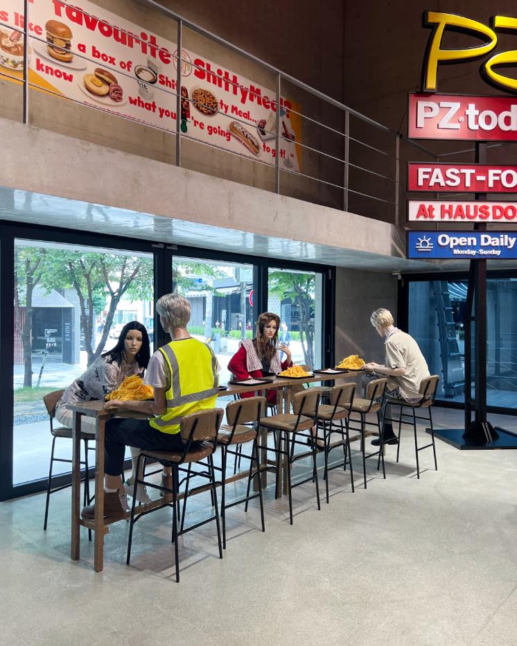 PZ today 특유의 감각으로 재해석한 패스트푸드 공간으로 눈이 즐거운 그래픽과 다채로운 아트워크를 선보였다. 각기 다른 Y2K 스타일의 의상을 입은 마네킹이 전시되어 있어 SNS에 다채롭게 재밌는 인생 샷을 남길 수 있을 것. 또한 PZ today의 위트 있는 굿즈와 더불어 하우스 도산에서는 팝업 한정으로 특별히 제작된 ‘Shitty Meal’을 판매한다. ‘Shitty Meal’은 맥도날드의 해피밀(Happy Meal)을 패러디한 제품으로, PZ today의 아티스트가 직접 제작한 50개의 스컬프터를 서프라이즈 박스 형태로 담아냈다. 50개의 스컬프터는 팝업 기간 동안 하우스 도산에 전시될 예정.