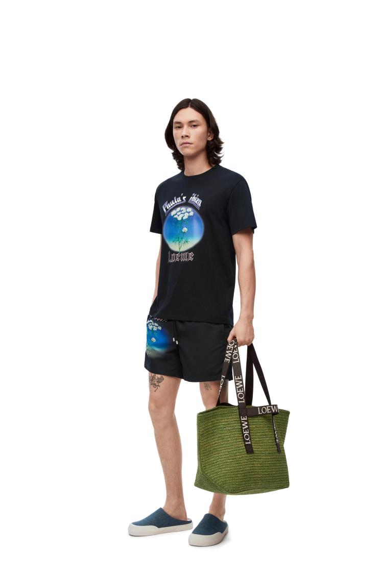 매해 여름 이비자의 다채로운 모습들을 담아낸 로에베의 파울라 이비자 컬렉션. 이번 시즌 에디터의 시선을 사로잡은 로에베 이비자 쇼츠는 기본중의 기본, 블랙 컬러의 심플한 디자인에 여름 감성 물씬 풍기는 블루 컬러의 프린트가 포인트가 특징이다.