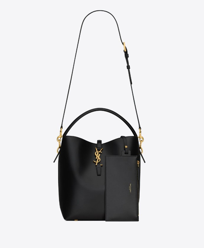실용적이고 세련된 버킷 백을 찾고 있다면 넉넉한 사이즈의 생로랑 버킷 백 LE 37 백을 추천한다. 부드럽고 매끈한 100% 카프스킨이 고급스러움을 극대화해준다. 지퍼 파우치가 포함되어 있으며, 평소에 소품이 많거나, 짐이 많은 사람에게 추천하는 데일리 백으로 탑 핸들은 9cm, 스크랩 길이는 40cm다. 20 X 25 X 16cm