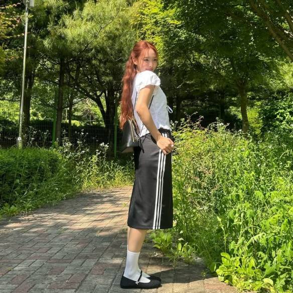 무려 좋아요 수 200만 개를 넘게 받은 한소희의 영상 게시물 속 백팩은? 클래식한 백팩의 대표주자, ‘국민 백팩’으로 불리는 ‘잔스포츠'의 슈퍼브레이크 모델이다. 4계절 내내 활용할 수 있는 어떤 룩에도 쉽게 들 수 있는 베이식 한 아이템이다. <바자>와 함께한 ‘패션타임라인' 인터뷰에서도 워머에 백팩 매치를 가장 즐겨 하는 스타일이라고 꼽았던 그. 체크 패턴이 조합된 오버사이즈 데님 재킷에 블랙 스커트와 모자, 백팩을 매치해 힙한 캐주얼룩을 완성했다. 더불어 보헤미안 무드가 느껴지는 원피스에 매치해 화제가 되기도!